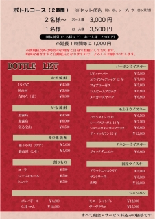 【ボトルキープ】2時間