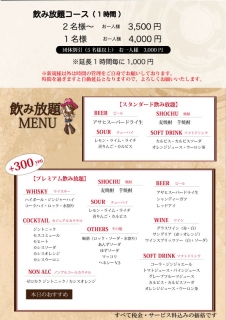【飲み放題コース】1時間