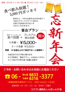 11/19~忘年会プラン、新年会プランがスタートします!
